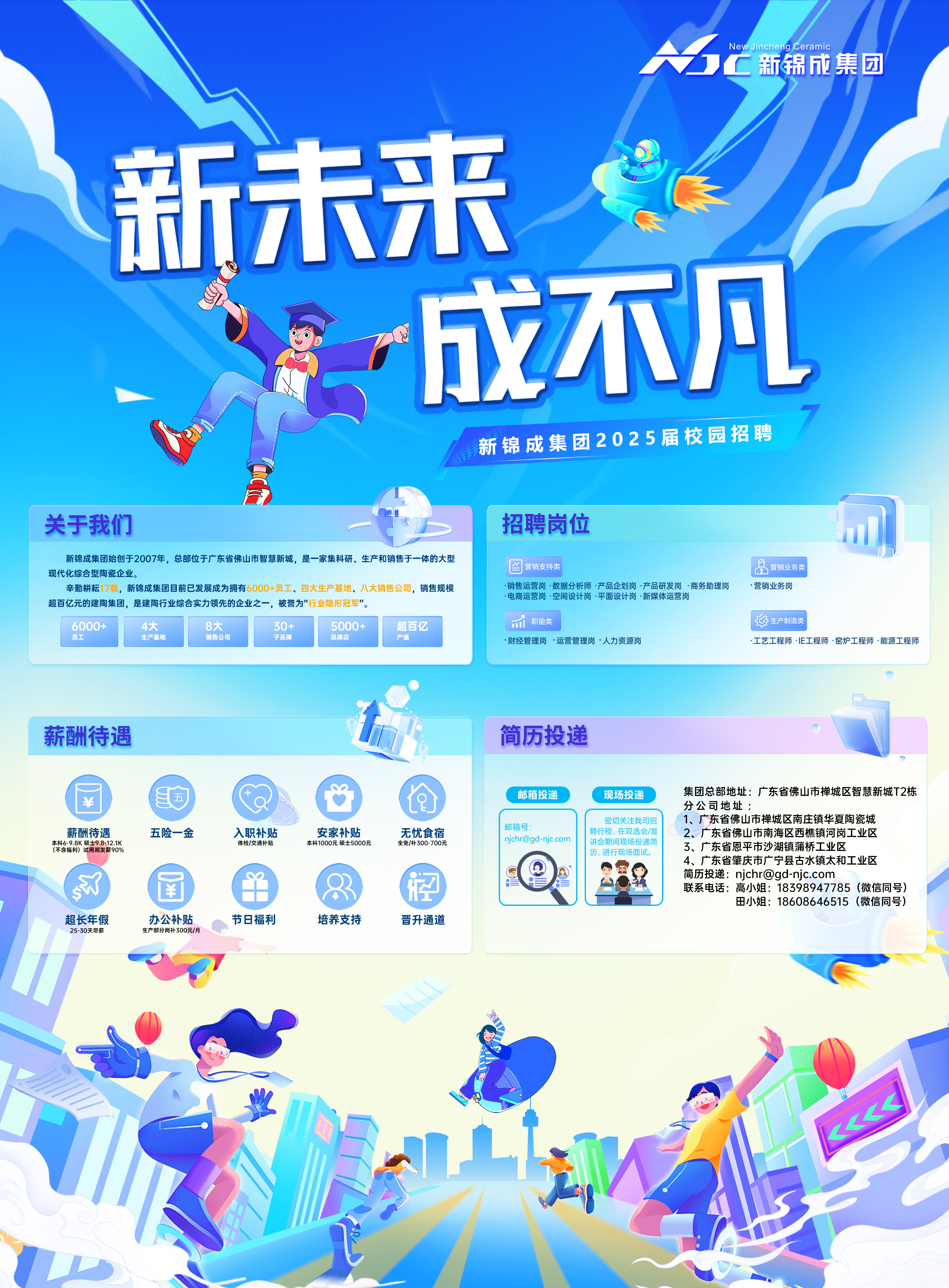 总部位于广东省佛山市智慧新城,是一家集科研、生产和销售于一体的大现代化综合型陶瓷企业。率勤耕耘17载,新锦成集团目前已发展成为拥有6000+员工、四火生产基培、八大销售公司,销售规极超百亿元的建陶集团,是建陶行业综合实力领先的企业之一,被誉为“行业隐形冠军。