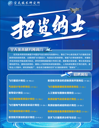 空天技术研究所隶属于中国空气动力研究与发展中心,整合了中心航空航天飞行器前沿创新研究的优势资源,主要承担飞行器设计、先进动力系统研制、智能飞行等创新研究、关键技术攻关和集成演示验证。研究所拥有国家重大专项工程、国家重点实验室、博士后流动站等科研平台,拥有名家领衔、精锐人才荟萃的科研创新团队,人均科研经费位于同行前列,是专业人才集中、研究领域宽广、综合实力雄厚的空天飞行器创新研究“国家队”。