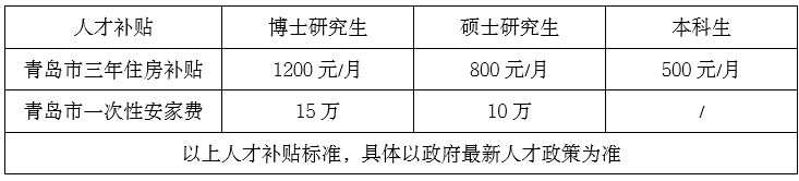 6.政府人才补贴:享受公司入职安置费的同时,可享受青岛市引进人才补贴