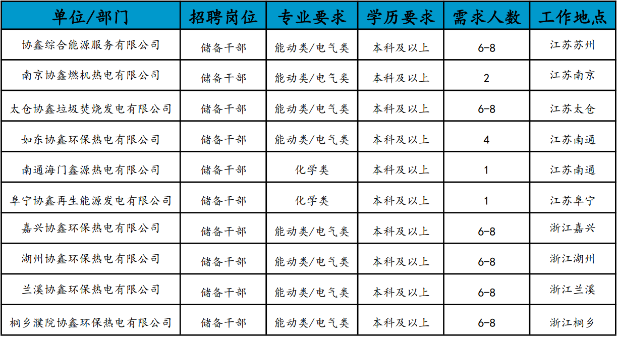 协鑫能源科技股份有限公司(证券简称:协鑫能科002015.SZ)系协鑫(集团)控股有限公司旗下企业,致力于成为领先的绿色能源服务商,母公司协鑫集团位居2024中国民营企业500强第43位,位居2024中国企业500强第146位,2024全球新能源500强世界第四,资产规模近两千亿元,年度营业收入连续多年超千亿元,总员工数超4万名。协鑫能科主营业务为清洁能源生产、综合能源服务以及数字能源运营。公司依托长期积累的行业经验,协同新型电力系统建设,倾力打造清洁能源生产/销售、储能、虚拟电厂、充换电、算力服务等一体化“能源+服务”产业链,为全球用户提供一站式能源服务。“双碳”目标引领下,公司在清洁能源业务方面,持续加快可再生能源、分布式能源、热电联产及综合能源服务,为电网、城市和千家用户提供电、热、冷等绿色能源产品。为加强公司人才储备和梯队建设,助力清洁能源跨越发展,公司计划引进一批专业知识过硬、学习能力优秀、发展潜力突出的新生力量,招聘2025届能动、电气、自动化、化学等相关专业应届毕业生。