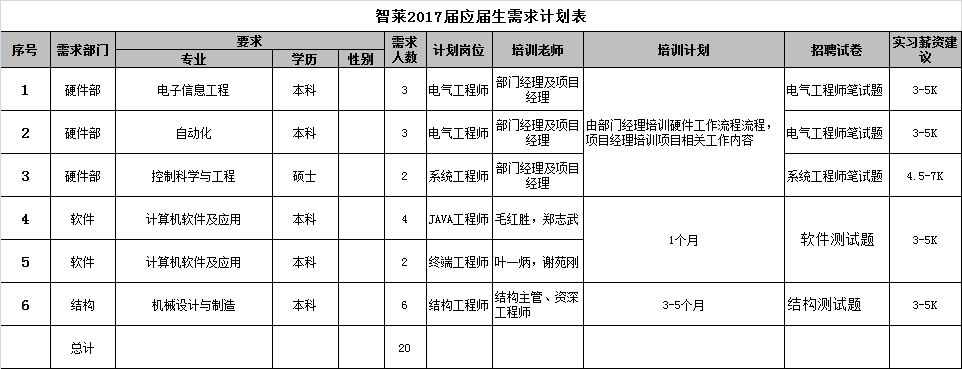 二、招聘岗位: