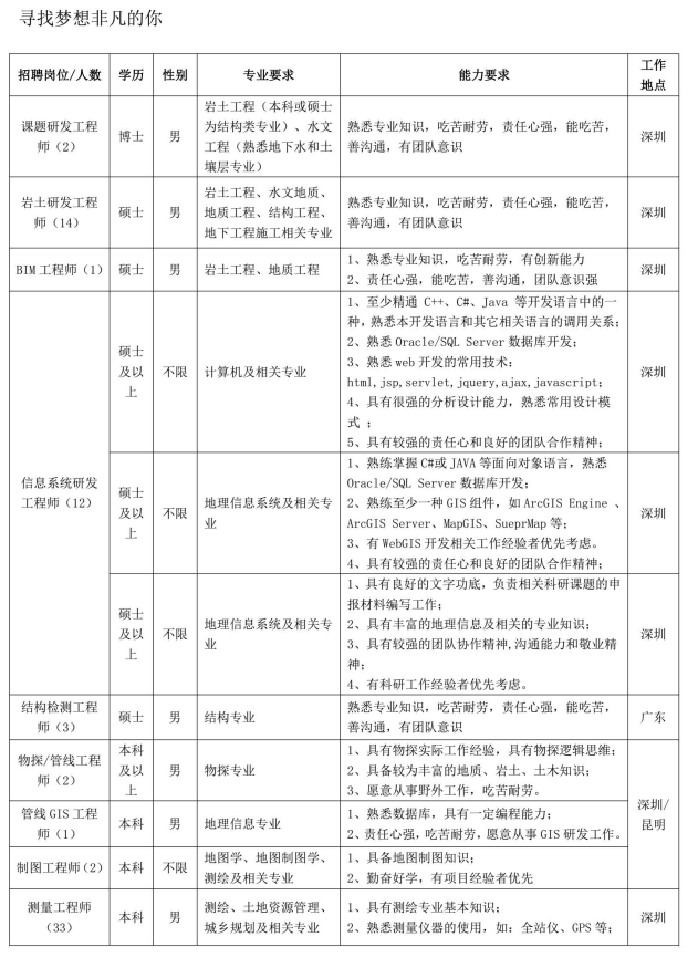 深圳市勘察研究院有限公司2018秋季校园招聘公告