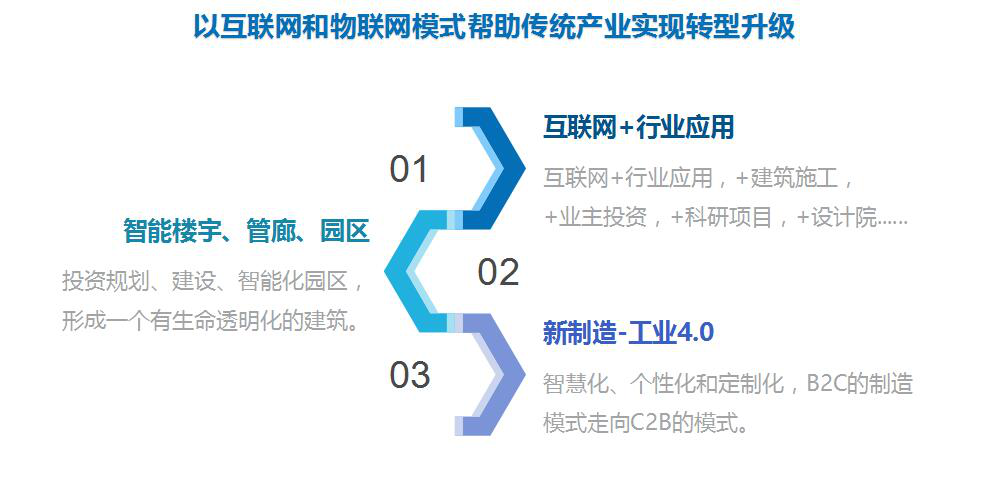 公司坚持“以互联网和物联网模式帮助传统产业实现转型升级”,主要业务划分为三大方向: