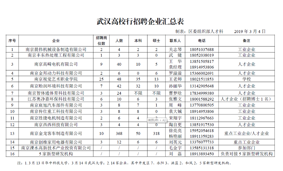 为精准引进各类人才,推动溧水经济高质量的发展,溧水区委区政府组织金龙客车制造有限公司、南京长安汽车有限公司、南京创维家用电器有限公司等21家企业开展招聘工作,招聘人数达755名。