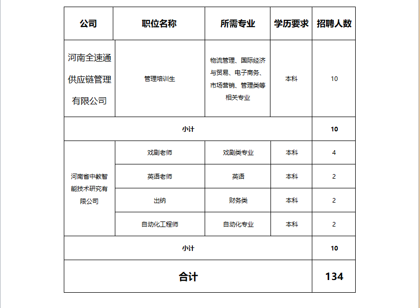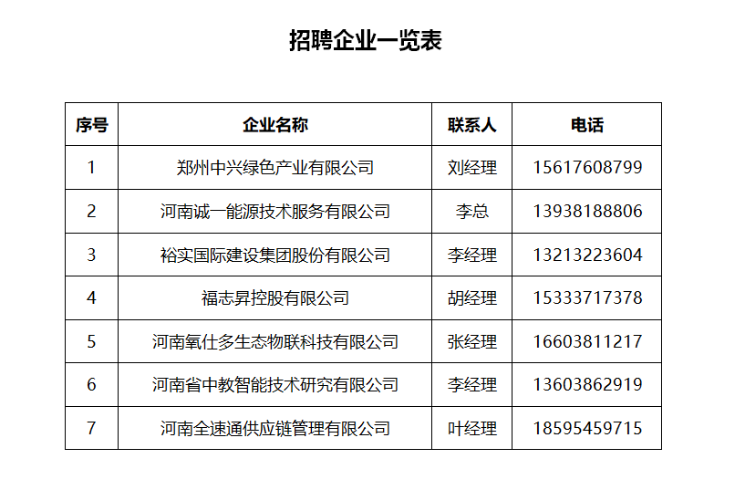 郑州中兴绿色产业有限公司等七家单位联合招聘简章